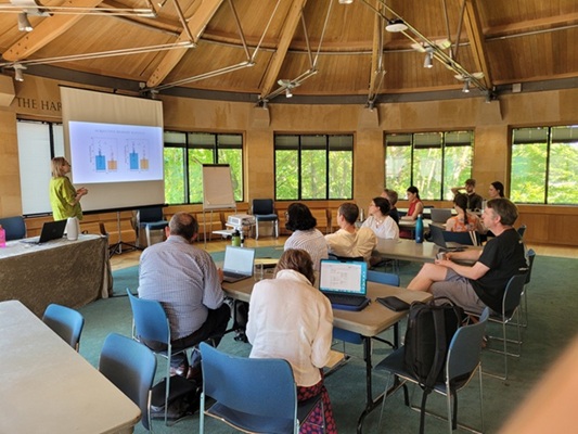 The rest of the session was devoted to a hackathon, designed to generate research questions and paradigms for a behavioural study that the team will be developing. Participants were divided into interdisciplinary groups, with care taken to ensure each team included researchers from a range of academic backgrounds.